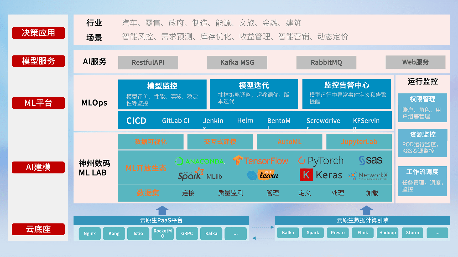数据+模型双引擎驱动,,,,面向智能服务场景,,快速灵活利用AI技术,,,,支持业务决策,,,,助力企业智能化转型破局。。。